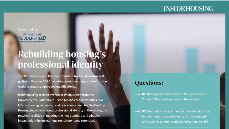 Inside Housing talks to Professor Philip Brown from the University of Huddersfield – who teaches the university’s new MSc in housing leadership and is academic lead for the Healthy Housing Initiative – about professional identity in the sector, the practical realities of meeting the new standard and what its impact might be on learning, recruitment and retention.