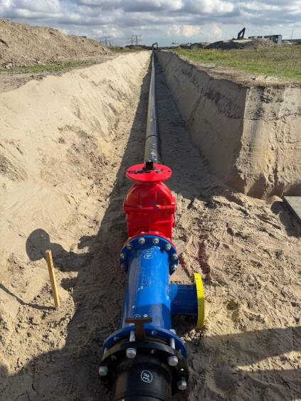 Aanleg blusleiding en waterwegen.