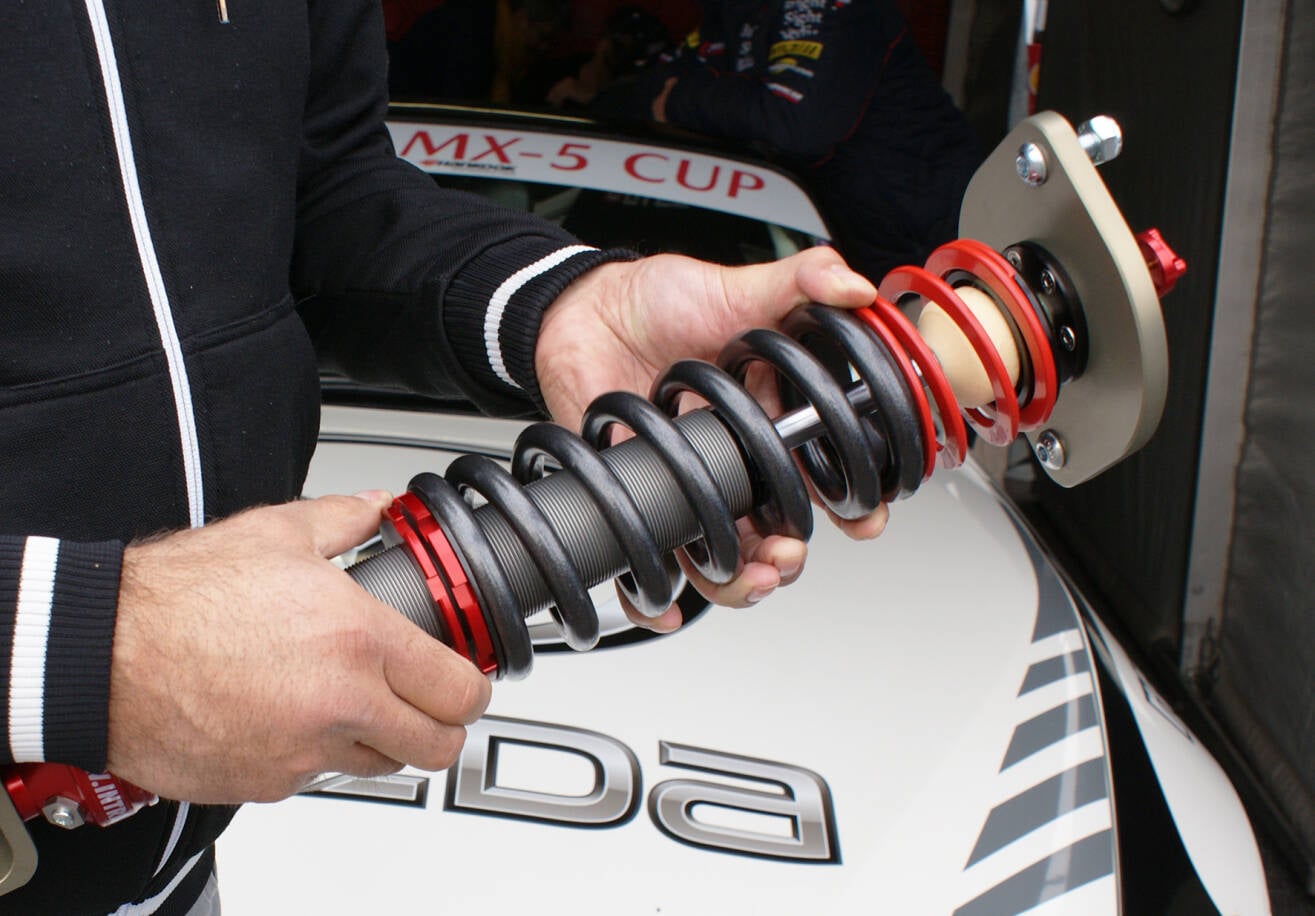 De circuit-versie van de Mazda MX-5 is voorzien van een aangepast onderstel met speciale schokbrekers, maar waarom is dit nodig?