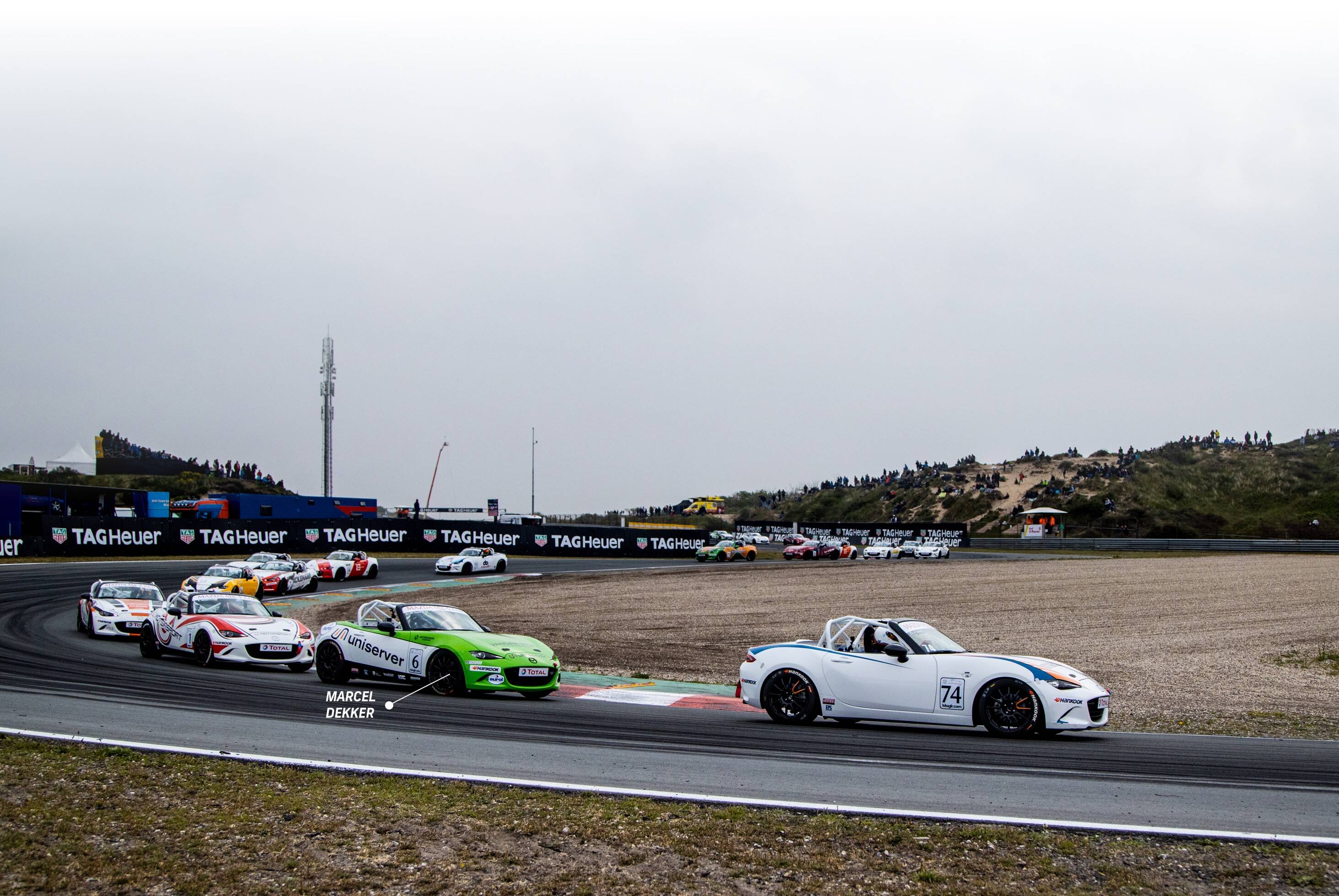 Marcel Dekker bekroonde zijn Mazda MX-5 Cup debuut met de overwinning, Olivier Naaktgeboren werd tweede en Max Weering knokte zich naar de derde podiumplaats na hevige strijd in een groep van vier rijders